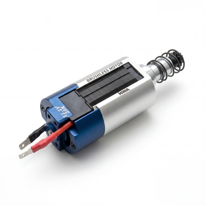 Built for serious performance, the KWA Brushless Motor is engineered for players who demand more from their AEGs—whether you’re building for speed, efficiency, or long-term reliability. Unlike traditional brushed motors that rely on carbon brushes and physical contact points, this brushless design uses electronic control for smoother operation, cleaner power delivery, and reduced wear over time.
